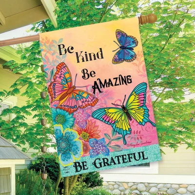 Be Grateful Butterflies Spring House Flag Inspirational Floral 28″ X 40″ Briarwood Lane