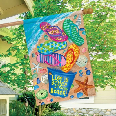Better At The Beach Summer House Flag Flip Flops Nautical 28″x40″ Briarwood Lane