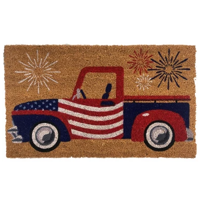 Briarwood Lane Patriotic Truck Coir Doormat Fourth Of July Natural Fiber Outdoor 30″ X 18″