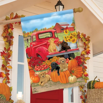 Fall Puppies House Flag Red Pickup Dogs Labs 28″ X 40″ Briarwood Lane