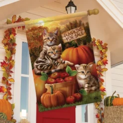 Fall Kittens Pumpkins House Flag Apple Basket Autumn 28″ X 40 Briarwood Lane