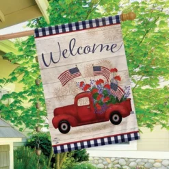 Springtime Pickup Burlap House Flag Welcome Floral 28″ X 40″ Briarwood Lane