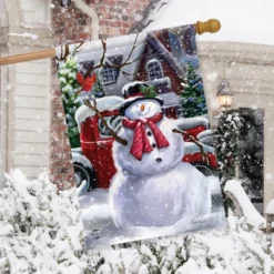 Briarwood Lane Snowfall Snowman Winter House Flag Red Pickup Truc