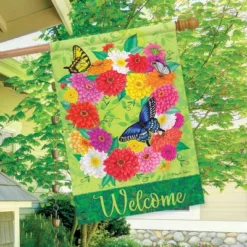 Zinnia Wreath Spring House Flag Welcome Floral 28″ X 40″ Briarwood Lane