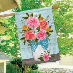 Red White And Blue Jars Floral House Flag Patriotic Checkered 28″ X 40″ Briarwood Lane