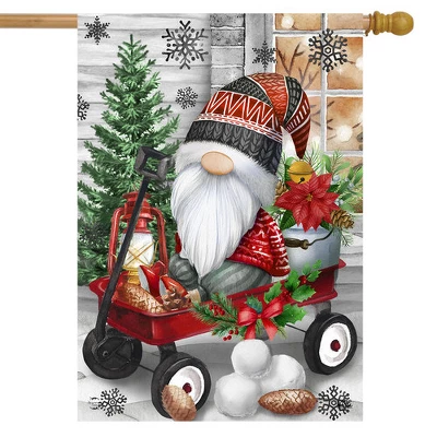 Wagon Gnome Winter House Flag 40″ X 28″ Briarwood Lane
